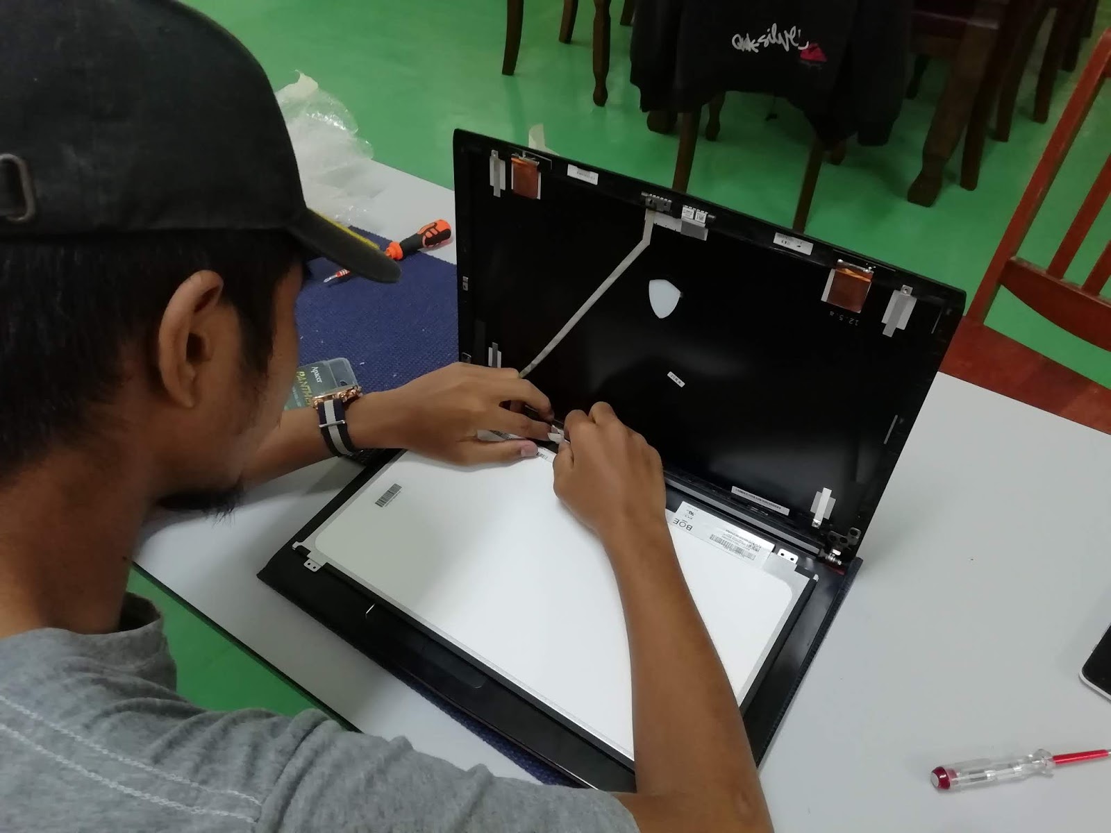 | proses menukar skrin yang baru |